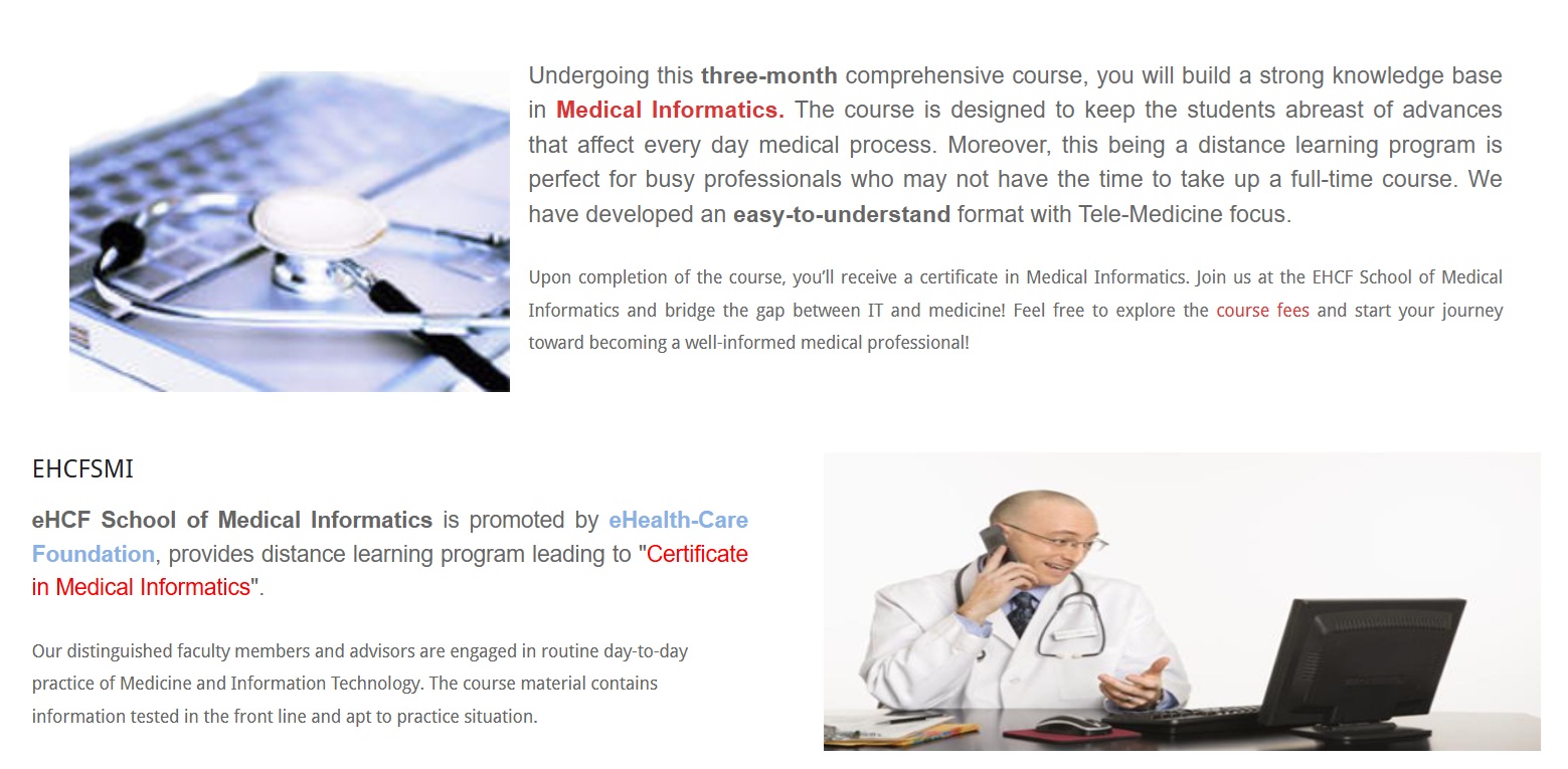 © 2007- 2025 eHCF School of Medical Informatics | eHealth-Care Foundation | M/s. eHealth-Care